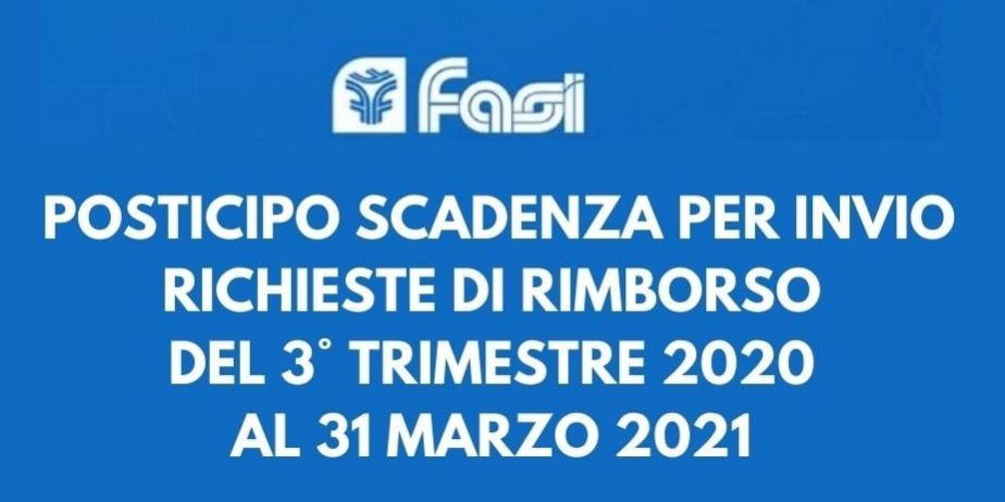 Al fine di agevolare gli assistiti rispetto alle limitazioni imposte alla mobilità personale, il Fasi ha deliberato di annullare la scadenza del 3° trimestre 2020 per l’inoltro delle richieste di rimborso, prevista per il 31 dicembre 2020, allineandola alla successiva del 31 marzo 2021.