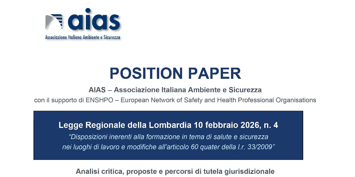 AIAS: Position paper LR Lombardia 10/02/2026, n. 4 sulla formazione in tema di salute e sicurezza nei luoghi di lavoro