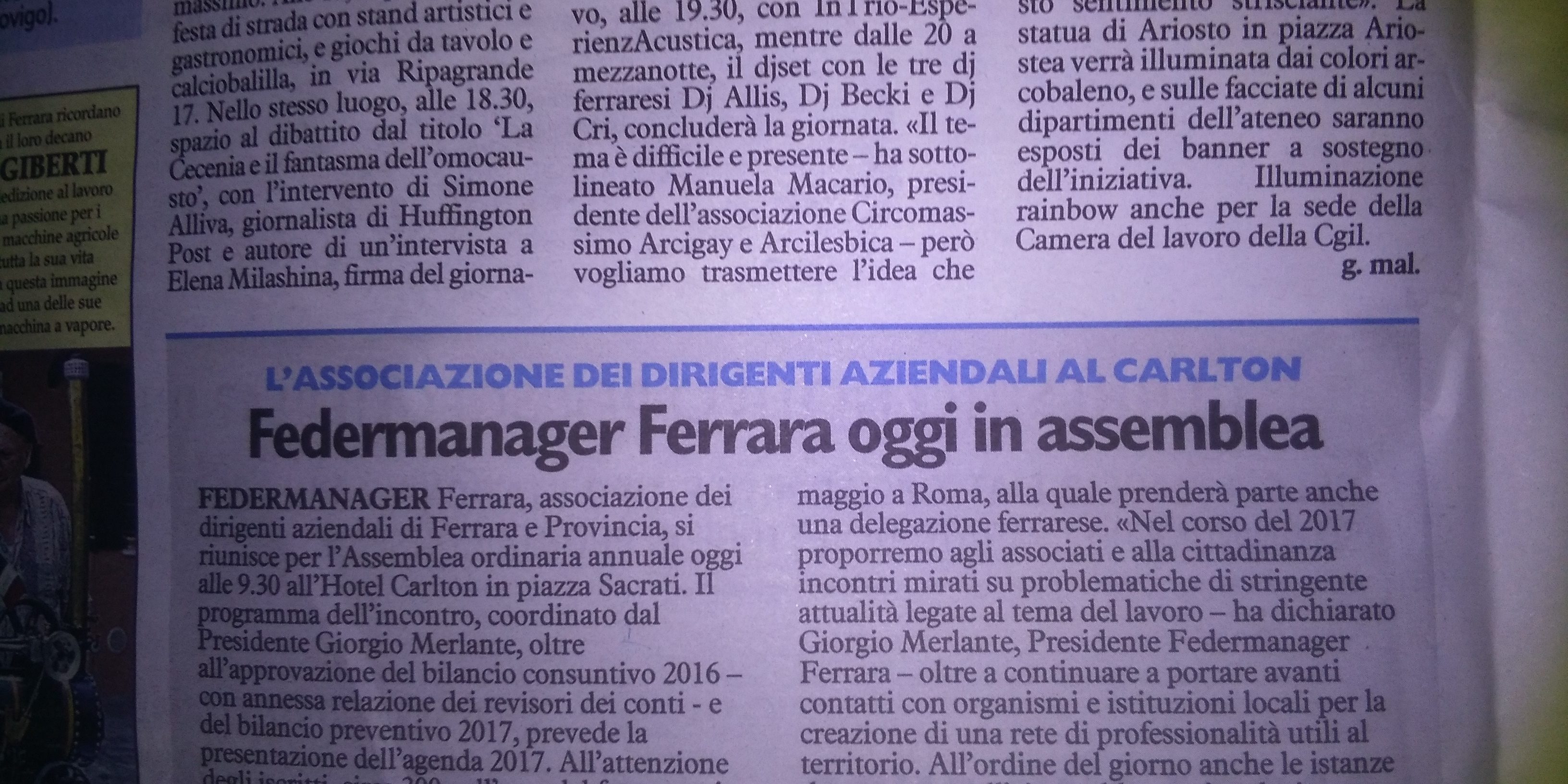 12 maggio – La Nuova Ferrara – Domani l’assemblea di Federmanager Tempo di bilanci