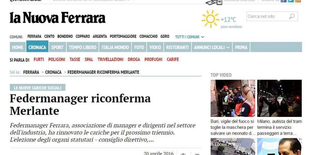 Federmanager Ferrara, associazione di manager e dirigenti nel settore dell’industria, ha rinnovato le cariche per il prossimo triennio. L’elezione degli organi statutari – consiglio direttivo, collegio dei revisori dei conti e dei probiviri – era avvenuta il 9 aprile a conclusione dell’assemblea ordinaria annuale, mentre le nomine sono state effettuate l’altra sera nel corso del primo consiglio direttivo, che si è riunito nella sede dell’associazione in via Armari. La scelta è stata quella di dare fiducia e continuità a quanto svolto nel precedente mandato, confermando Giorgio Merlante alla presidenza per il triennio 2016-2018.