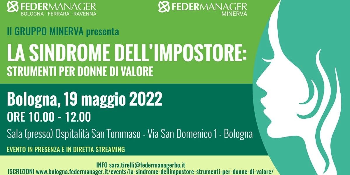 Il Gruppo Minerva di Federmanager Bologna – Ferrara – Ravenna organizza l’incontro “La sindrome dell’impostore: Strumenti per donne di valore”, che si svolge giovedì 19 maggio dalle 10 alle 12 presso l’Ospitalità San Tommaso in via San Domenico 1 a Bologna e on line in diretta streaming.