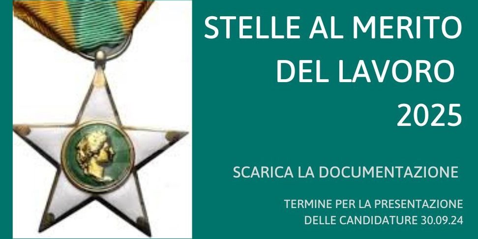 Il 1° maggio 2025 saranno conferite le decorazioni delle “Stelle al Merito del Lavoro” secondo le norme della legge n. 143 del 5.2.1992. L’onorificenza della stella al merito del lavoro è rilasciata a coloro i quali si sono particolarmente distinti per eccellenti meriti di perizia, laboriosità e condotta morale.