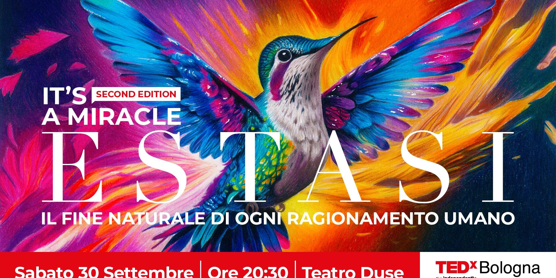 Sabato 30 settembre 2023 dalle 20.30, nello storico contesto del Teatro Duse, TEDxBologna è lieta di annunciare il secondo capitolo della serie “It’s a Miracle“. Sul palco della dodicesima edizione si susseguiranno nove protagonisti che racconteranno i loro progetti, i traguardi che hanno raggiunto, ma soprattutto le idee di valore che hanno dato impulso ai loro propositi. Scorci di vita autentici, che coinvolgeranno il pubblico in momenti di riflessione, condivisione e intrattenimento, come da sempre è nello spirito di TEDx e dei suoi attesissimi appuntamenti.